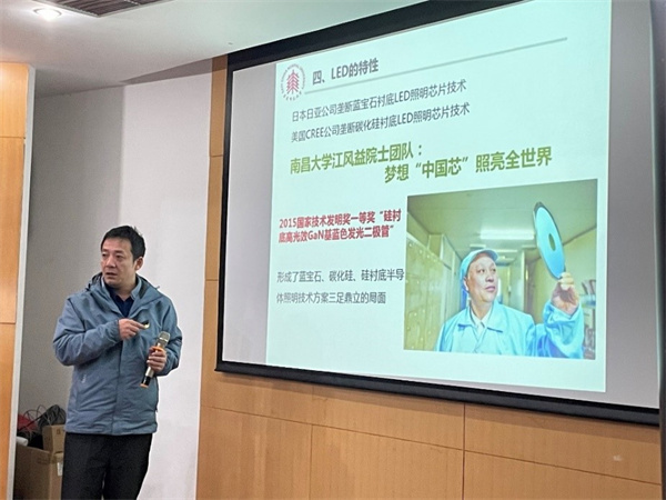随后,电子科学系副主任彭晖作《发光器件与显示技术》的课程思政示范课讲授,他以蓝光LED的发明为例,结合诺贝尔奖获得者中村修二的故事、GaN蓝光LED专利之争和南昌大学江风益院士团队自主创新的故事,从课程设计方面入手,讲述了如何通过课程知识背后的科学故事传播正能量,激发学生对专业课程的学习热情、提高课堂活跃度,从而达到教书育人的目的。