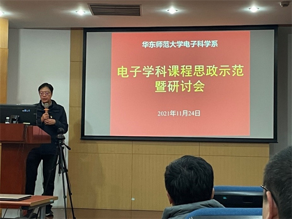 为落实“立德树人”根本任务,全面推进电子科学系课程思政建设,1124日下午,电子科学系教工党支部与电子科学系高年级研究生党支部牵手共建,在物理楼226报告厅召开课程思政示范研讨会。会议由电子科学系教工党支部书记黄荣主持,物理学系副主任李欣受邀作主题报告。