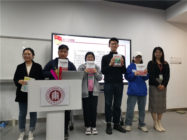 为深入推进党史学习教育,引导党员学党史、知党情、跟党走,11月18日,精密光谱国家重点实验室2021级研究生第一、二党支部组织党史校史知识竞赛,32名党员组建6支队伍参加了竞赛,实验室教工第二党支部书记贾天卿、学生辅导员杨欣怡受邀参加活动。