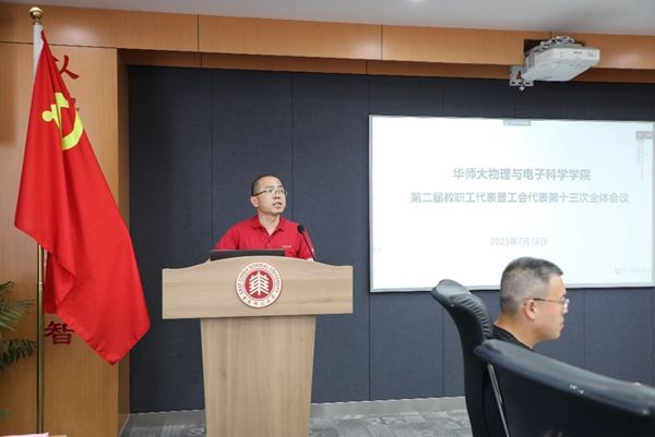 7月18日下午,物理与电子科学学院第二届教代会第十三次会议以线上线下相结合的方式,在闵行校区物理楼三楼多功能厅举行,讨论并审议《乐鱼在线绩效实施方案(2023年修订)审议稿》。学院党政班子成员及教代会代表共47人参加,工会主席赵振杰主持本次会议。