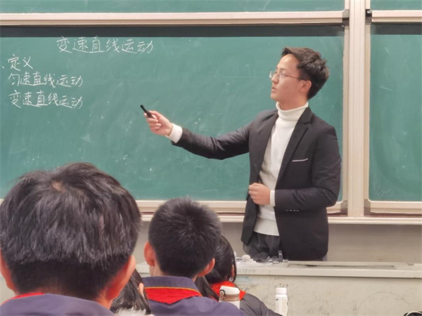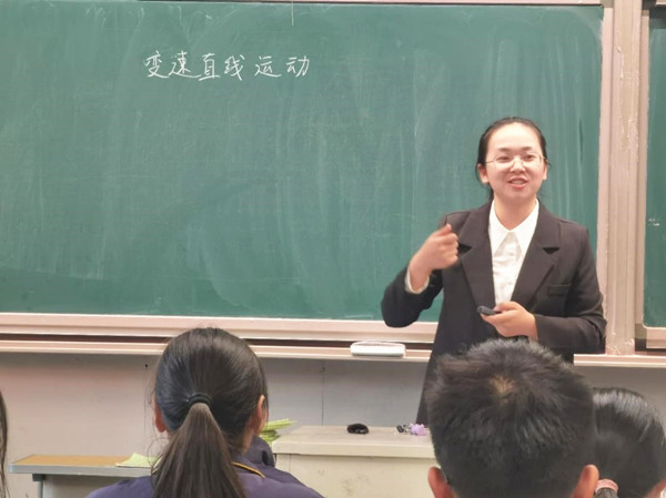 选手韩婷板书工整、语言严谨、教态亲和。她精心设计教学环节,巧妙设置课堂互动,引导学生自主总结变速直线运动的特点,通过实验设计、操作与记录,提升学生动手能力。