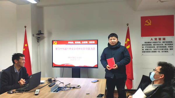 12月22日下午,材料科学系教工党支部在物理楼223会议室集体学习党的第十九届六中全会精神,深刻领会全会精神的丰富内涵和核心要义,活动由支部书记敬承斌主持。