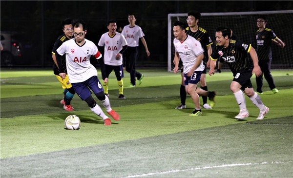 下半场第22分钟,“热刺队”边后卫王元力边路盘带,杀入禁区,低射得手,将比分定格为6:4,“热刺队”领衔“狼队”两球。之后双方你来我往,但比分未再度改写,随着裁判员一声哨响,全场比赛结束,热刺队以6:4的比分获胜。