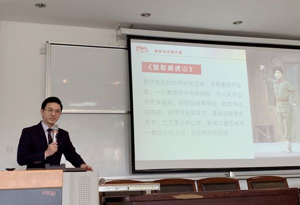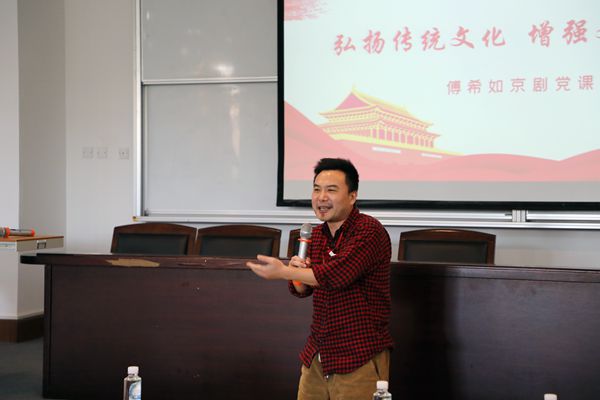 傅希如以《国粹京剧中的红色基因》为题,重点讲解了《智取威虎山》《梅兰芳·蓄须记》《沙家浜》等京剧中的红色元素。他谈到,“四史”教育可以让我们明白国家为什么会越来越富强,随后详细讲述了京剧“生、旦、净、丑”的特点和代表意义。傅希如还现场即兴为大家讲解、表演了京剧《智取威虎山》片段,出色地讲解和深厚的功底,赢得了参会教工阵阵热烈的掌声。参会教师纷纷表示,这是一次非常有意义的“四史”学习活动,通过学习京剧中的红色元素,感受到了中国传统文化的魅力,感受到了中国共产党人为革命事业而不懈奋斗的赤胆忠心。
