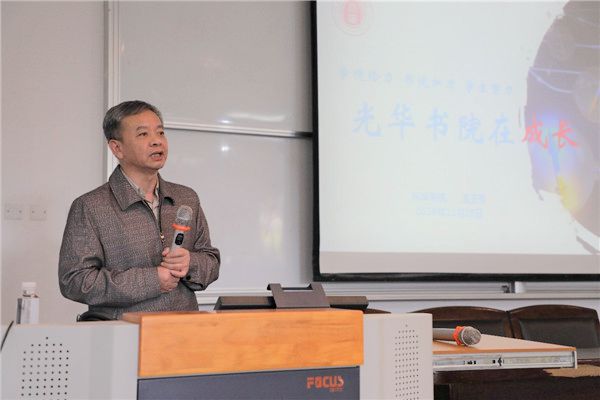 温玉亮以“学院给力、书院加力、学生努力,光华书院在成长”为主题,围绕物理材料类非师范生基本情况、学生毕业去向、第二课堂代表性活动等进行介绍。温玉亮谈到,光华书院目前已经顺利走过了三年多的时光,慢慢形成了培育学生家国情怀与理想信念的思路,学院和书院是密切联系在一起的,期待学院和书院继续携手,促进学生成长成才。