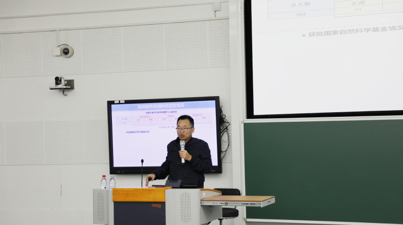 学院副院长武海斌介绍了本年度学院教师承担科研项目的具体情况,他鼓励学院教师提前聚焦研究方向,在申报过程中及时交流。武海斌重点强调了在项目申报过程中的科研诚信问题,特别是对个人信息真实性负责、将申请书内容告知参与者、合理合规使用科研经费等。