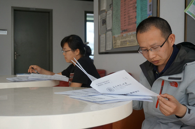 4月19日下午1点左右,黄蕊老师和周武雷老师两位评委认真评阅了参赛教案,通讯员也仔细阅读了几份,其内容清晰明了,见解新颖独特,既有专业 老师的稳重熟练,又有年轻学生特有的创新活力。当天下午3点左右,教师技能月活动之模拟课堂比赛在物理楼230会议室正式举行。