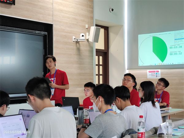 决赛(表演赛)赛场设于同济大学教学南楼329教室,来自各参赛高校的百余位师生现场观摩了比赛。三方队伍就三道赛题的物理研究展开激烈的学术讨论,凭借对赛题的深入理解、前期的大量研究和现场的出色表现,参赛学生赢得了全场观众的热烈掌声。经7位裁判打分,华东师范大学1队最终获得了本次比赛的特等奖。