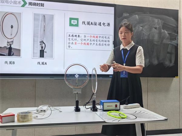 参赛师生以优异的成绩展现了我院物理专业师范生卓越育人成果。其中,陈佳妮同学的课题《互感与自感》作为优秀作品之一,被推荐参加大赛的优秀作品展示与交流;王壬午同学在教技、教具比赛中均获一等奖。