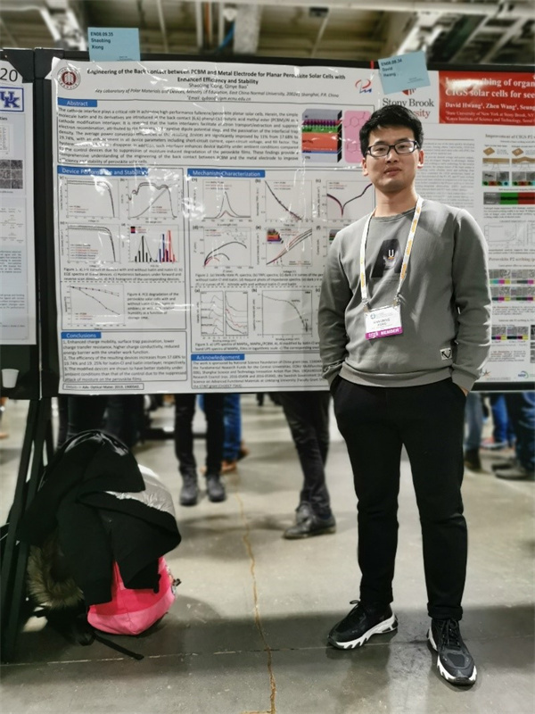 共发表SCI论文17篇(其中一区论文13篇),影响因子IF合计大于240,包括以第一作者在Joule (IF=41.2)、Advanced Energy Materials (IF = 29.3)、NanoEnergy (IF =16.8)等高水平期刊发表论文7篇,2篇入选高被引论文;申请国家发明专利2项。获2019年华东师范大学研究生国际会议专项基金,赴美国参加MRS材料年会并作成果展示。