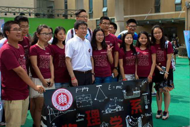 众所周知,陈群校长不仅是我们敬爱的师长,还是我们物理系的资深学长!当陈校长来到物理的摊位,他的第一句话就是“我终于回到了母系!”