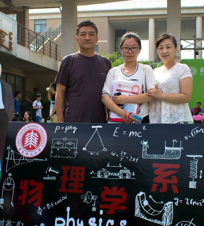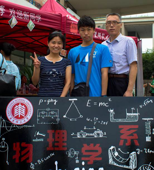 小鲜肉们在物理系特色展板前,与家人,与学导的合影。是大学第一天,人生新起点的留影留念。从此四年,情系物理,愿毕业那天,你会比现在更爱这里。
