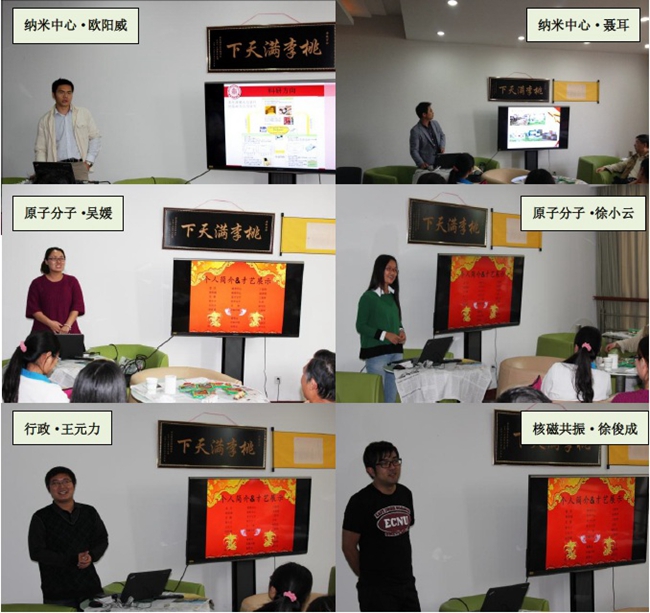 2014年新入职的6位青年教师一开始便分别以“昨天”、“今天”和“明天”为主题将不同的人生履历、工作职位、人生规划向大家做了分享。