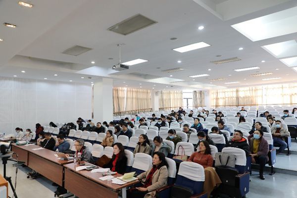 12月16日下午,物理与电子科学学院在闵行校区三教109报告厅召开全院教职工大会。因疫情防控需要,本次会议采用线上线下结合的方式进行。上海市学习贯彻党的十九届五中全会精神宣讲团成员奚洁人教授上专题党课,孟宪承书院副院长梁宏亮应邀参会,学院师生约350人参加。会议由学院党委书记李恺主持。