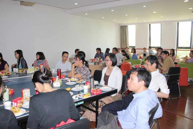工会主席姜继森老师主持了本次活动。姜老师首先为大家介绍了“工会之家”、“妇女小家”的筹备情况。他介绍到,学校和系里都非常重视教职工的业 余生活和身体健康。校工会向物理系赠送了自动咖啡机;系里专门添置了跑步机、乒乓球桌、羽毛球拍等健身设备和器材,以便教师们在繁忙工作的间隙进行休闲放 松和身体锻炼。姜老师呼吁大家平时一定要把身体健康放在第一重要的位置,保持健康的生活方式,积极参加各项体育锻炼。