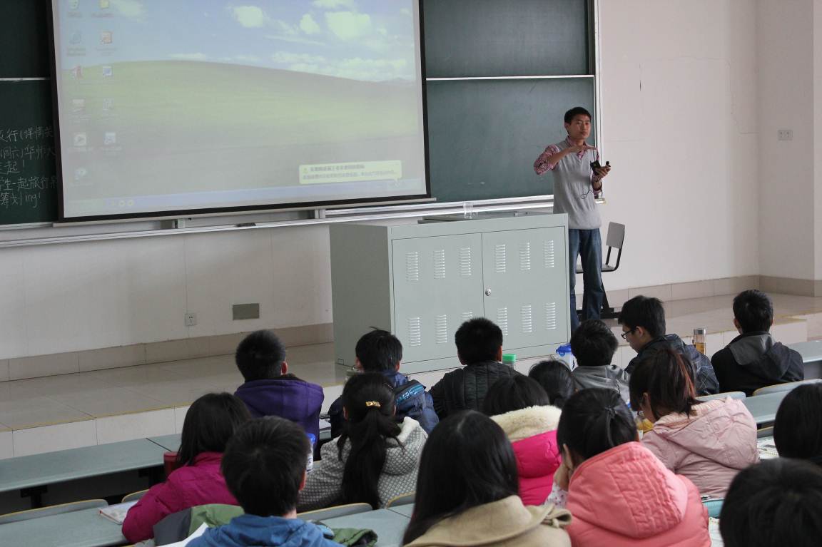 另一位特邀嘉宾,秦自强学长从实习地的选择、实习中的听课讲课以及求职时的注意事项等几个方面讲述了自己的经历与经验。蔡际阳学长在前两位嘉宾 之后,更加细致地结合了自己找工作时的几个转折点同全体师范生分享了求职要点:简洁大方地向学校说明实习意愿;在实习学校要谦虚诚恳地求教;多多锻炼自己 的教学技能;为自己设定合适的目标。