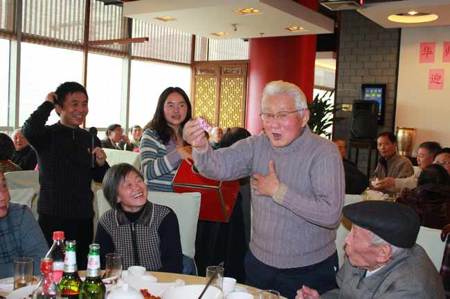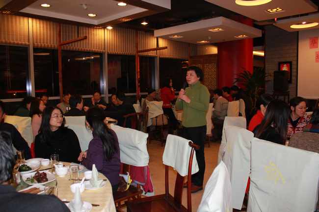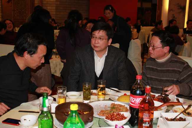 当天中午,在同一地点举行了物理系退休教职工迎新年联欢会,系全体退休教职工和多位系领导参加了联欢会和午宴。系党委书记马学鸣祝退休教职工新年快乐、身体健康,感谢他们为物理系作出的贡献,希望继续支持物理系的工作。退休教师们在轻松的气氛下边聊边吃,开心的交流。