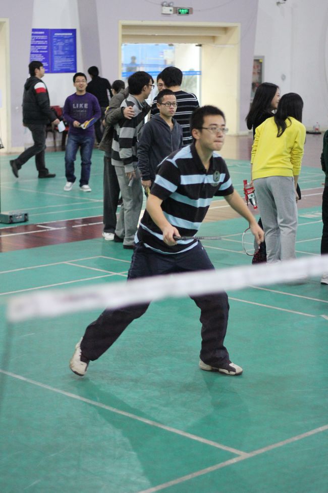 比赛从八点开始,首先进行的是女单和男单,最后是混双。各参赛者以积极参与体育活动的热情准时出席比赛,各裁判也是判罚公正、认真负责地记 录每一场比赛,有的举牌,有的记录,大家协调一致,而几位工作人员也是忙的不易乐乎,为羽毛球赛的顺利的进行提供了保障。赛场上,选手们挥汗如雨,使出全 力应对每一个球,最精彩的应属混双,一男一女配合默契,时而一前一后,时而一左一右,经过多轮激烈比赛后,大家都筋疲力尽,最终俞锎与聂纯阳分获男女单打 冠军,聂纯阳、黎晋良获得混双冠军。