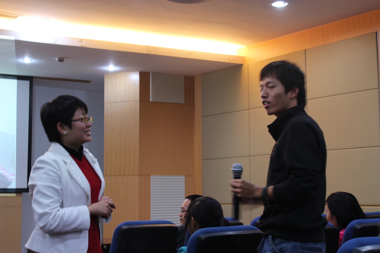 讲座伊始,吕博老师积极与新生互动,了解新生们入学以来的不适应和困惑,随后根据同学们讲述和提问,吕博老师概述了环境、学习、人际关系、理 财、心理5个方面新生需要在大学生活期间适应的主要课题,启迪同学们正确认识自身现状和差异,学会尊重他人,谆谆教诲同学们在大学期间要获得成功4拼图: 文凭、实用技能、独立的人格、同学的友情。同时通过8只狐狸的寓言故事,让新生们认识和认清自己,教导同学们在面对困难和欲望的时候该如何自处。吕博老师也在讲座的过程中不断的跟同学们分享一些人际关系处理以及心理适应的实用小技巧和方法以及一些日常生活中需要注意的一些小细节,引发了同学们的深思。