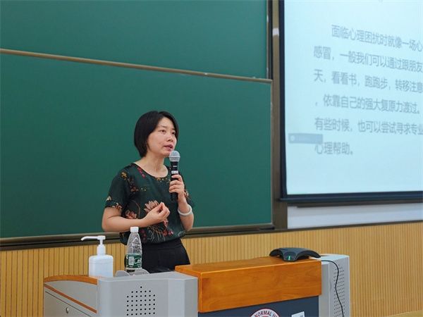 9月12日上午,学校心理健康教育与咨询中心季青应邀作心理健康讲座。讲座中,她从心理健康的概念出发,重点讲述了新生心理适应过程中可能出现的不适情况及如何应对各种心理问题。她围绕“出现心理问题的信号”这一主题,希望同学们互相关心、及时发现并正确认识和解决心理健康问题,同时提出,要积极的面对人生,学会“拿得起,放得下”,有效释放压力、舒缓情绪。最后,她介绍了我校心理健康教育与咨询中心的相关服务和校内活动。