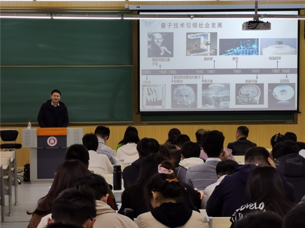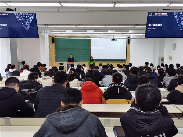 33日下午,在物理实验绪论课上,来自国仪量子的陈明博士在四教102教室为学院2018级物理专业本科生作前沿报告《量子计算》。讲座由物理实验教学中心副主任尹亚玲主持,150余名师生来到现场聆听报告。