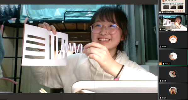 主讲学生志愿者辛玥以《穿墙而过的小球》为题,通过趣味小实验,引导同学们发现藏在“墙”里的秘密——偏振片。利用直观的模型,为同学们讲解了偏振片的特点、偏振光的产生原理、拓展了同学们对光的波动性的认识。解密了“墙”的相关知识后,辛玥线上指导同学们自主完成了小球实验,让同学们在自己动手的过程中对偏振光有了初步的了解。