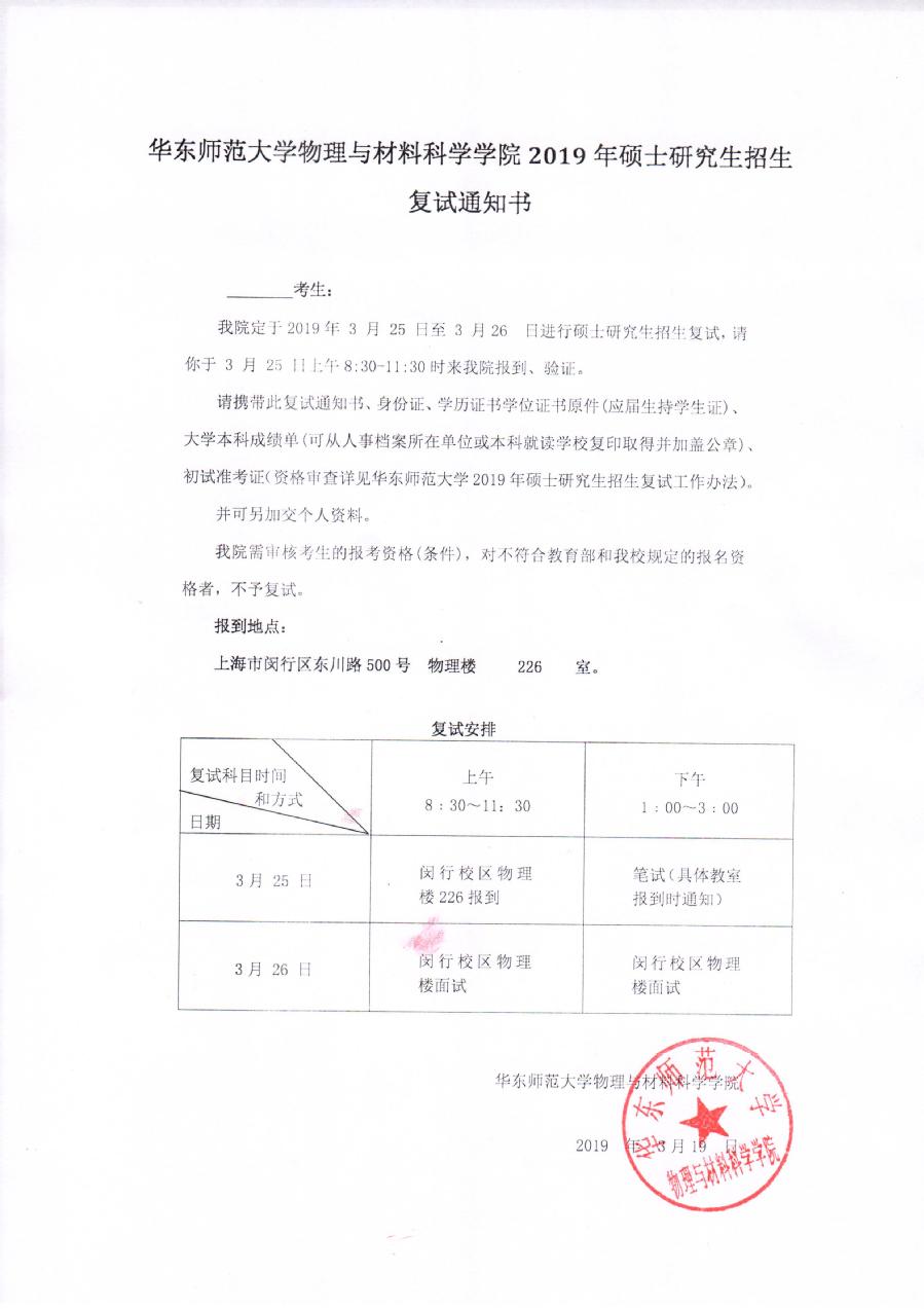 物理与材料科学学院2019年硕士研究生招生复试通知