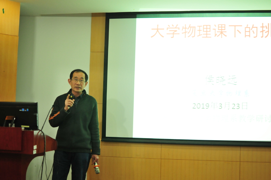侯晓远教授根据多年在复旦大学育人的经验,列举大量鲜活事例,做了题为“大学物理课下的挑战”的精彩报告,指出学生学习方面存在的问题其实是思想问题,教学就一定要延伸到课下和课外。老师的门要向学生敞开,及时解决学生的思想问题。