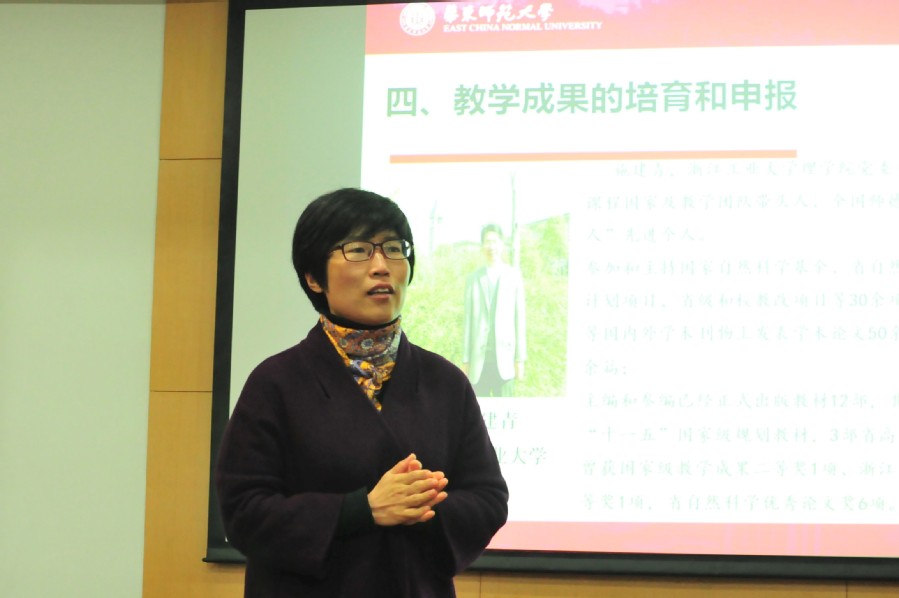 施建青教授围绕“什么是教育成果、如何培育教学成果、如何申报教学成果”等三个方面详细介绍了教学成果的培育和申报的心得,与会教师受益匪浅。