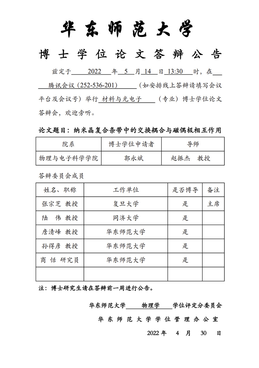 华东师范大学 博士学位论文答辩公告-郭永斌