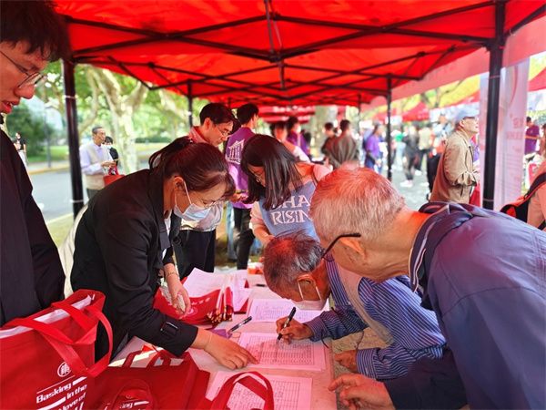 上午8点钟,学院的接待摊位前已人头攒动,校友陆续前来签到,志愿者给他们分发了学校精心准备的大礼包和学院的文化周边产品。