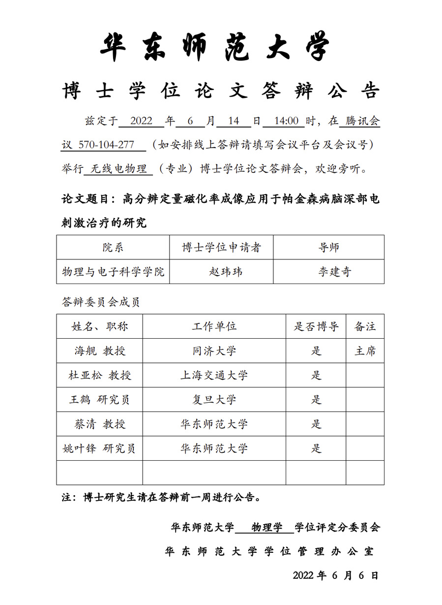华东师范大学 博士学位论文答辩公告-赵玮玮