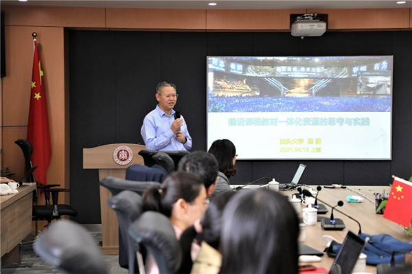 为进一步推动学院卓越课程建设,4月19日上午,汕头大学副校长陈敏教授、清华大学王青教授应邀为学院师生作卓越课程建设报告。学院党委书记李恺、物理系教工党支部、物理实验教学中心党支部、学院相关主干课教师等40余人分别在闵行物理楼三楼多功能厅和腾讯会议(线上)参加学习。报告由教务处副处长、学院副院长周先荣主持。