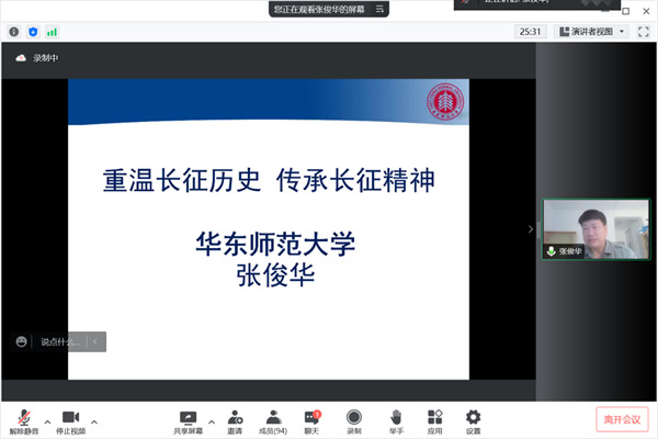 张俊华以“重温长征历史,传承长征精神”为题作主题报告,他以信仰之问、时代之问、创新之问开题,从背景分析、历程概要、历史意义、当代价值四个方面,用丰富的史料数据、人物故事重现了长征历程,深刻分析了长征精神的内涵和价值意义。张俊华表示,长征是一首令人荡气回肠的壮歌,也是一部伟大的人类史诗。“屡败屡战、摧而不垮,锲而不舍、百折不挠,宁折不弯、宁弯不折,艰苦创业、自强不息”是长征精神的新时代内涵。他强调,新时代有新使命,毕业生党员要牢记伟大长征精神、学习伟大长征精神、弘扬伟大长征精神,学习红军战士一路风餐露宿、腥风血雨仍然保持坚韧乐观的伟大精神,在新的人生长征路上续写新的篇章、创造新的辉煌。