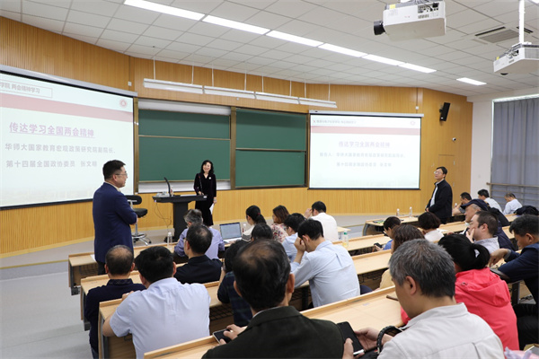 第十四届全国政协委员、中国致公党上海市委员会副主委、华东师范大学国家教育宏观政策研究院暨社会学系教授张文明应邀作《“准与稳”——2025年全国两会精神传达》主题报告。