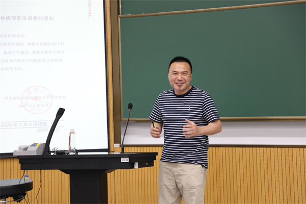 为深入学习贯彻2025年全国两会精神,部署新学期重点工作,4月16日下午,物理与电子科学学院(含精密光谱国重实验室)在二教231教室召开4月全院教职工大会,270余名教职工参加,会议由党委书记李恺主持。