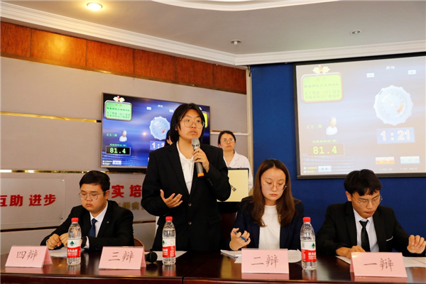 比赛围绕“人工智能(AI)技术发展对知识产权保护带来的机遇大于挑战还是挑战大于机遇”展开。由孟宪承书院物理学(师范)专业2020级本科生韩婷、庞媛元,光华书院物理学专业2020级本科生王文泽、物理与电子科学学院电子信息大类2020级本科生郭山牧组成的正方代表队对阵上海市第五人民医院医生和护士等医务工作组成的反方代表队。