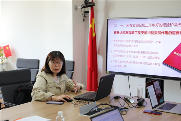 物理实验教学中心教工党支部纪检委员王春梅表示,通过纪检培训,认识到了学校纪检体系的组织架构、工作内容、基层纪检委员的重要性与优势。她谈到,基层党支部纪检委员要加强教师节、招生毕业等重要时间节点的廉洁提醒,加强对交纳党费、科研经费规范使用等方面的监督。