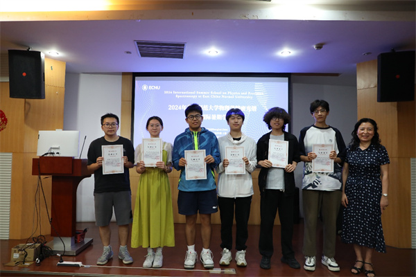随后,李恺同学院副院长徐敏、物理系系主任陈丽清、副系主任袁春华一起,为所有参与暑期学校的同学颁发了结业证书。