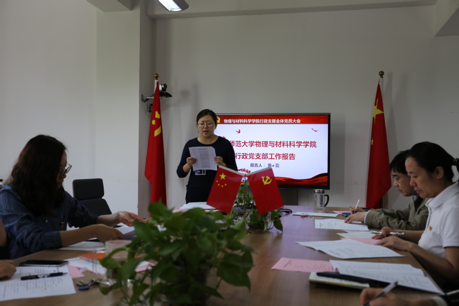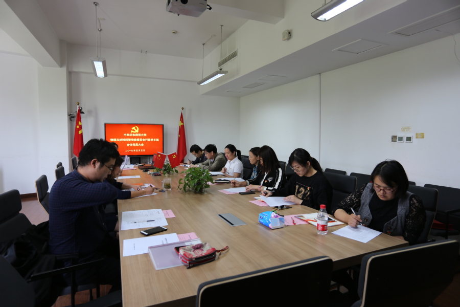 为了切实加强基层党组织建设,更好地发挥党组织的作用,根据《中国共产党章程》及《中国共产党支部工作条例(试行)》有关规定和上级党组织有关要求,2019年5月5日中午,物理与材料科学学院行政党支部在闵行物理楼223会议室召开全体党员大会,进行行政党支部委员会换届选举工作。大会由支部书记黄蕊同志主持,12位正式党员参加会议。
