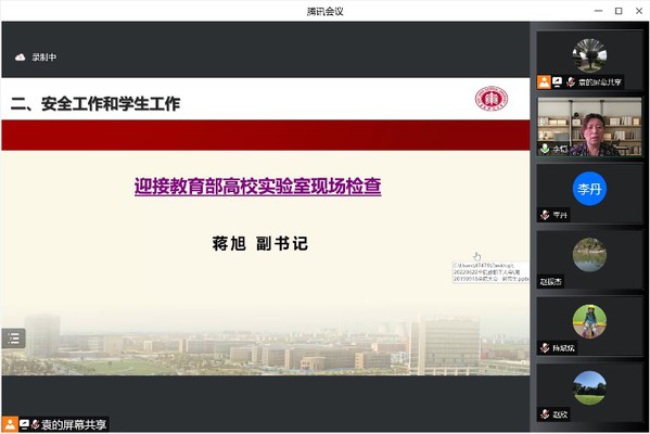 学院党委副书记蒋旭通报了学院迎接教育部安全检查的工作部署和进程,介绍了学校、学院实验室安全自查自纠情况,并分析了学院日常自查发现的隐患问题,同时谈到,要高度重视实验室安全工作,对照相关要求逐项开展认真、彻底、全面的实验室自查自纠工作,并对排查出的风险和隐患及时排雷,防止反弹。此外,蒋旭还对学院2022年毕业生就业情况进行通报。