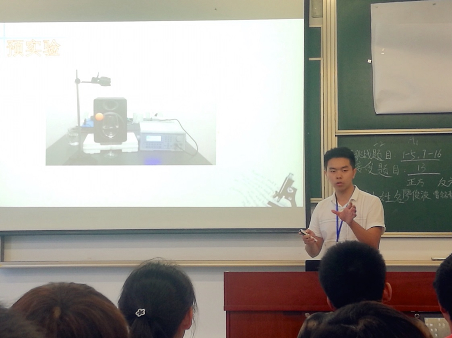 (二队队员廖俊波同学陈述共鸣的玻璃酒杯)