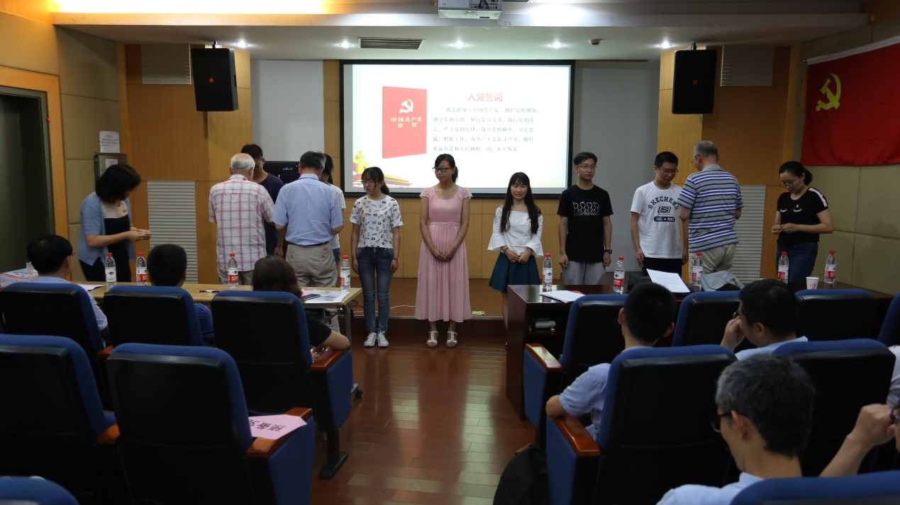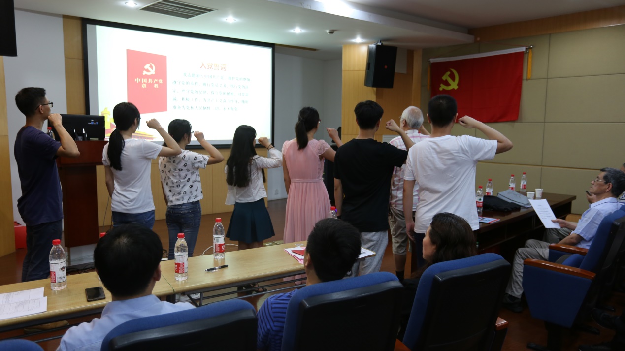 随后2017-2018学年新发展的党员在于龙生教授的领誓下进行了庄严的宣誓仪式,并由关工委朱鋐雄教师、丁良恩教授、于龙生教授一起为新党员佩戴党员徽章。一声声誓言铿锵有力,掷地有声,这既是对建党九十七周年的隆重纪念,也是对新老党员的一次深刻的党性教育,象征着一个党员政治生命的开始,体现了一个共产党人为实现人生最高价值所作出的无悔选择。