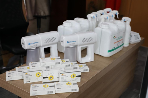 姜小平对公司捐赠物资进行简要介绍。他表示,公司基于新冠疫情防治需要,对消杀资源进行整合并成功生产上市。此次捐赠是公司回馈学校、回馈社会,协同社会共同抗击新冠肺炎疫情的重要举措。