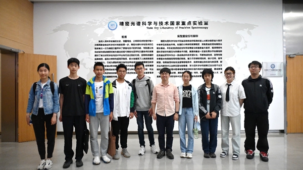 随后,营员们参观了精密光谱科学与技术国家重点实验室科研平台,深入了解超导磁体系统和傅里叶变换红外光谱仪等实验设备的功能。袁翔教授用通俗有趣的方式,以“扭麻花”“切甜甜圈”等形象比喻,带大家“入门”拓扑物理和维度探索,让营员们在轻松的氛围中感受前沿科学的魅力。