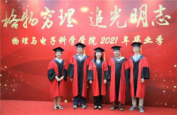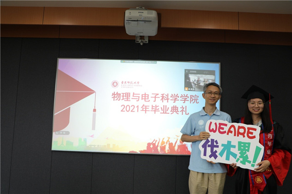 6月17日上午,物理与电子科学学院2021届毕业典礼在闵行校区物理楼三楼多功能厅举行。典礼采用线上线下结合的方式,学院党委书记李恺、院长程亚,副院长武海斌、胡炳文、徐敏,教师代表、毕业年级辅导员老师、市校优秀毕业生代表等在现场参加典礼。毕业典礼由学院党委副书记蒋旭主持。