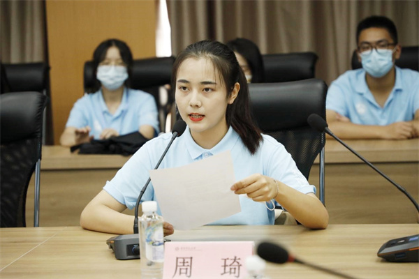 “站在学校和学院为我们搭建的科研平台上,身边是无数的优秀教师和同学,我们必须再接再厉,确立目标,持之以恒,用自己的专业知识去创造更好的、属于我们的未来。”老生代表、2020级物理电子学专业硕博连读生隋峰锐对学校和学院的培养表示感谢,期待和新生同学一道,珍惜时光,学会学习、学会研究、勇担责任,不断攀登新的人生高峰。