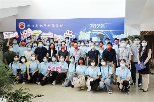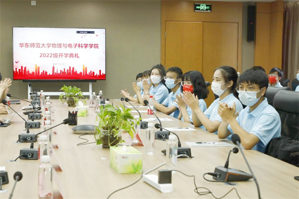 9月9日上午,物理与电子科学学院2022年新生开学典礼在物理楼三楼多功能厅举行。学院党政班子成员,教师代表,专业班主任代表等参会。典礼由学院党委副书记蒋旭主持,440余名学生在线参加。