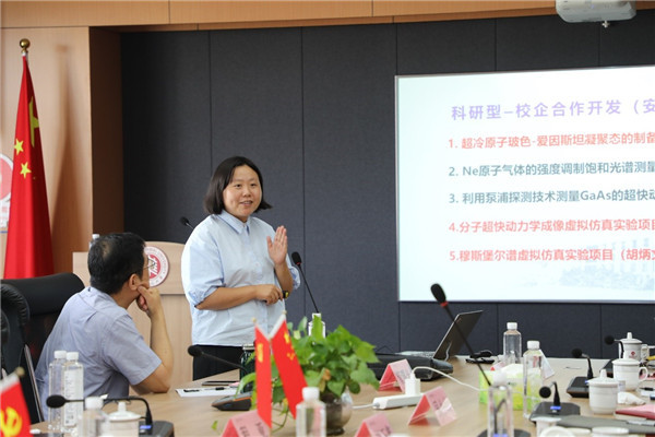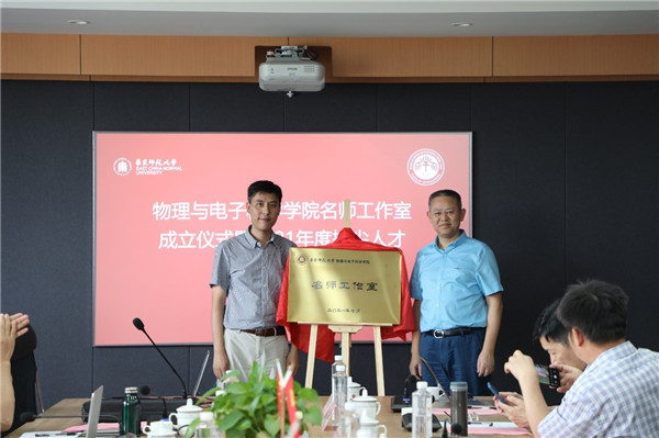 7月13日,物理与电子科学学院“名师工作室”成立仪式暨2021年拔尖人才培养研讨会在物理楼三楼多功能厅举行。汕头大学副校长陈敏教授、北京大学刘玉鑫教授、吉林大学张汉壮教授、南京大学吴小山教授、上海交通大学胡其图教授、复旦大学教务处处长蒋最敏教授、南开大学刘玉斌教授、同济大学张建卫教授,我校教务处处长孟钟捷教授、副处长周先荣教授,学院院长程亚教授,学院党委副书记、精密光谱科学与技术国家重点实验室主任兼党总支书记吴健教授,学院挂职副院长路俊哲副教授等50余名校内外专家现场参会。山西大学贾锁堂教授、清华大学阮东教授及相关教师线上参会。会议由学院副院长徐敏、物理专业责任教授刘宗华共同主持。