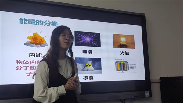 本期科普课程以“能量”为主题,宣讲团成员、2020级本科生王媛担任主讲教师,2021级硕士研究生童欣辅助,“追光”大学生科普宣讲团、学院党建中心全体成员共同观摩。
